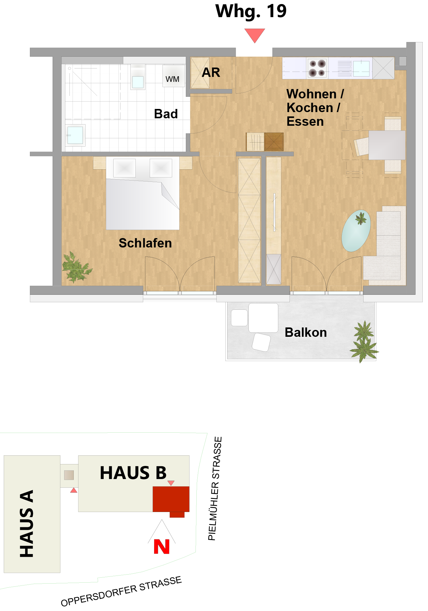 Das separate Schlafzimmer bietet einen ruhigen Rückzugsort und ausreichend Platz für individuelle Einrichtungsideen. Die durchdachte Grundrissgestaltung ermöglicht komfortables Wohnen mit kurzen Wegen und einer optimalen Nutzung der Räume.